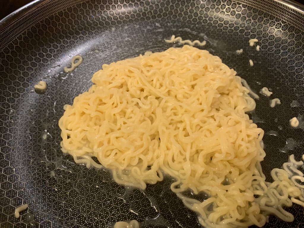 焼きそばを焼いたフライパンは洗わずにそのまま。これに乗せて弱火にかける。