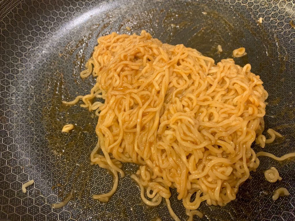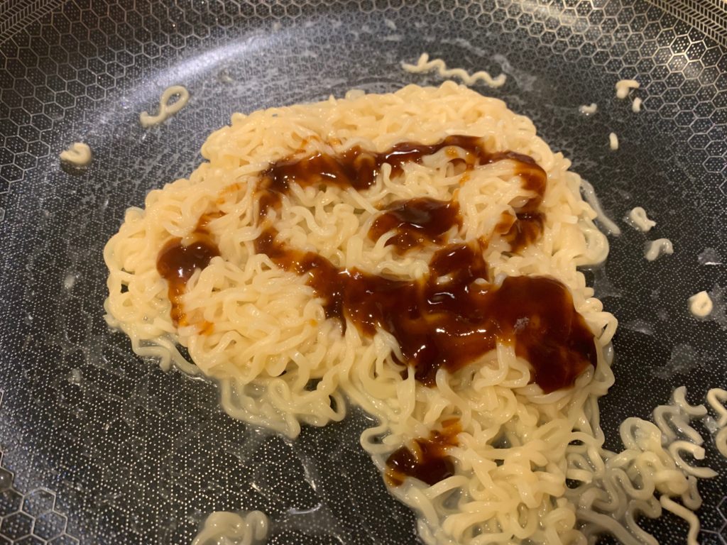 混ぜる。まあこれだけでもすでに焼きそばとして美味しく食べれるかも。