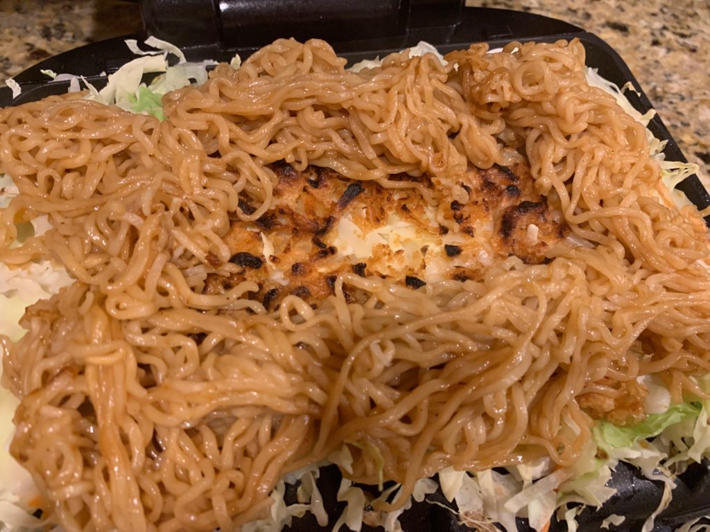 焼きそばで堀を作る。