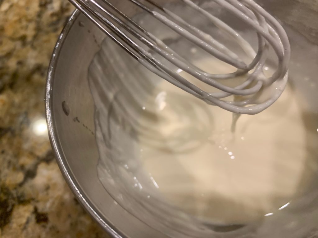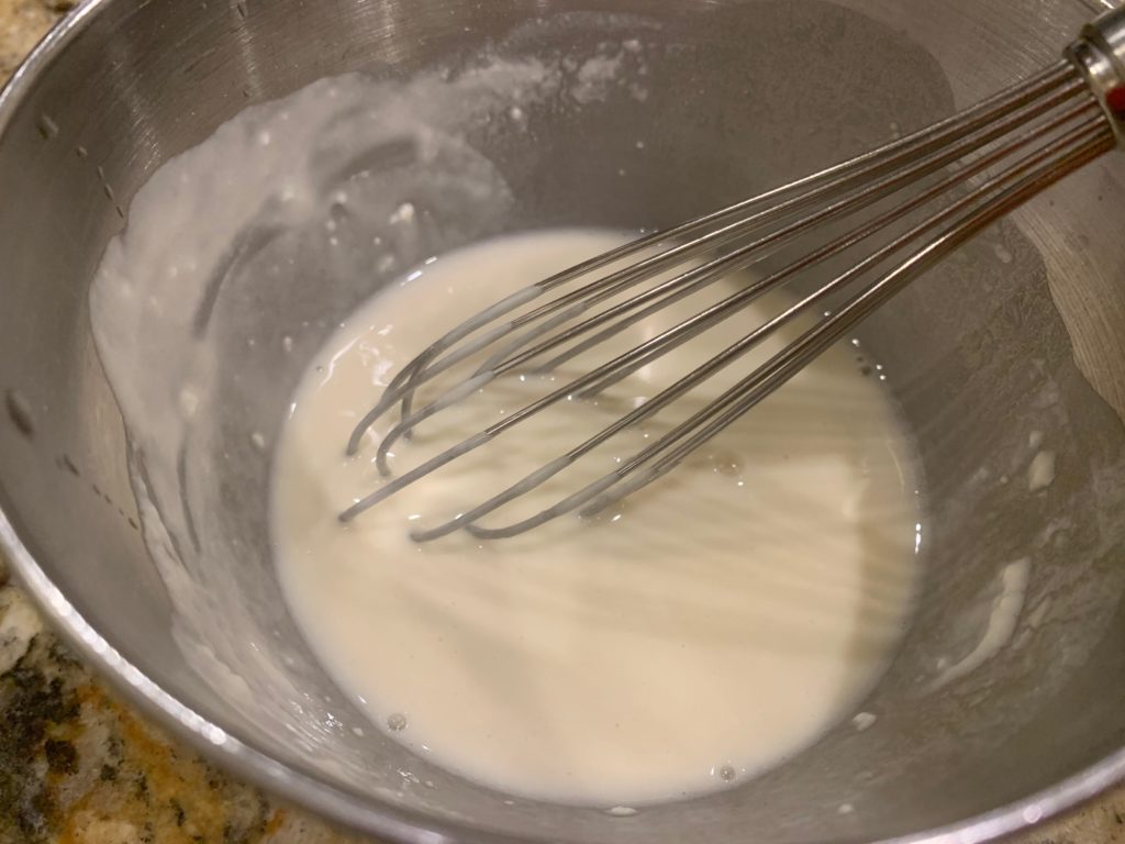 最初、少なめの水で固めに練るとダマになりにくい。一気に水ぜんぶ入れるとダマに。