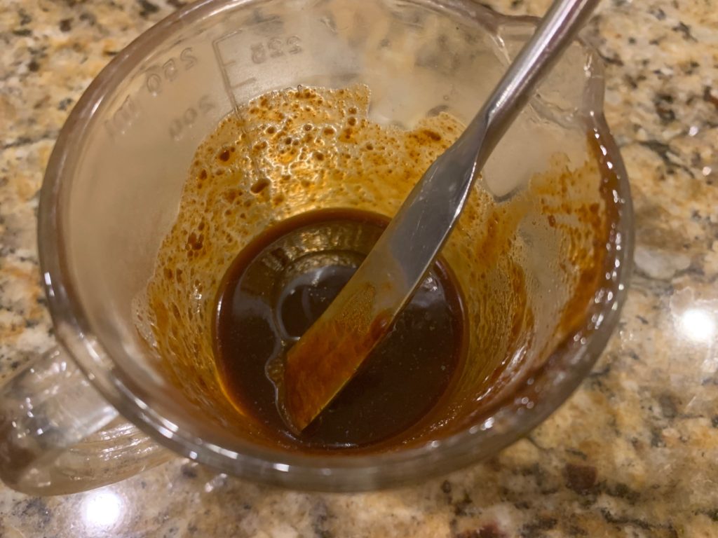 今のうちにタレを。10秒レンチンしたみりんにコチュジャン溶かす。分量にはもちろんこだわってます。