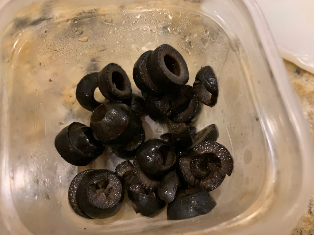 同じく冷蔵庫の別の階に長くいた缶詰オリーブ。お別れの時が来た。