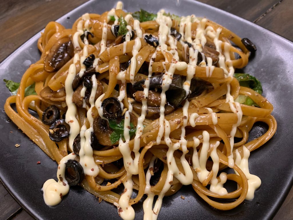 オリーブオイルとうなぎのタレを茹で汁で乳化させると完全にエッチ。しかもタレがちょっと焦げる感じで。
