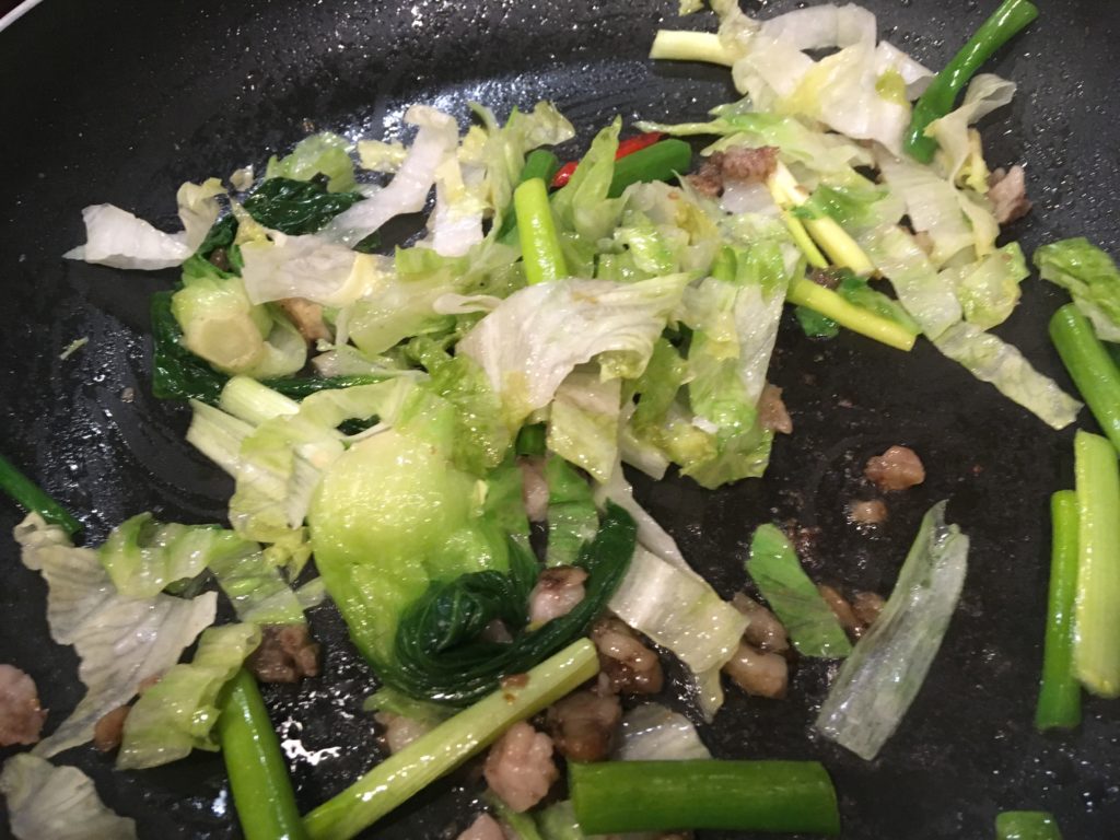 野菜も。今日は冷凍されて微妙な青梗菜、事故品のレタス、高齢のネギという残念なトリオ。それでも焼きそばならまあ美味しく食えるだろう。砂糖もちょっと足す。