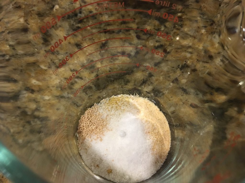 油をかけて混ぜてからもう一度。180℃ (355F) のオーブンで30分。