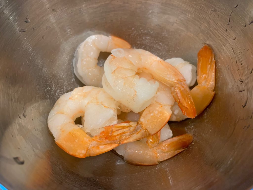 冷蔵庫から取り出したばかりの新鮮な冷凍エビを解凍したやつ。