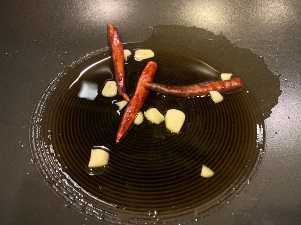 ニンニクと唐辛子は別になくてもいいと思うけど、家にあるんなら油ぶっかけて温めましょう。