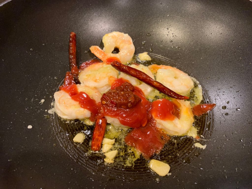 ケチャップと豆板醤入れたらすぐに火を止めて混ぜるだけ。