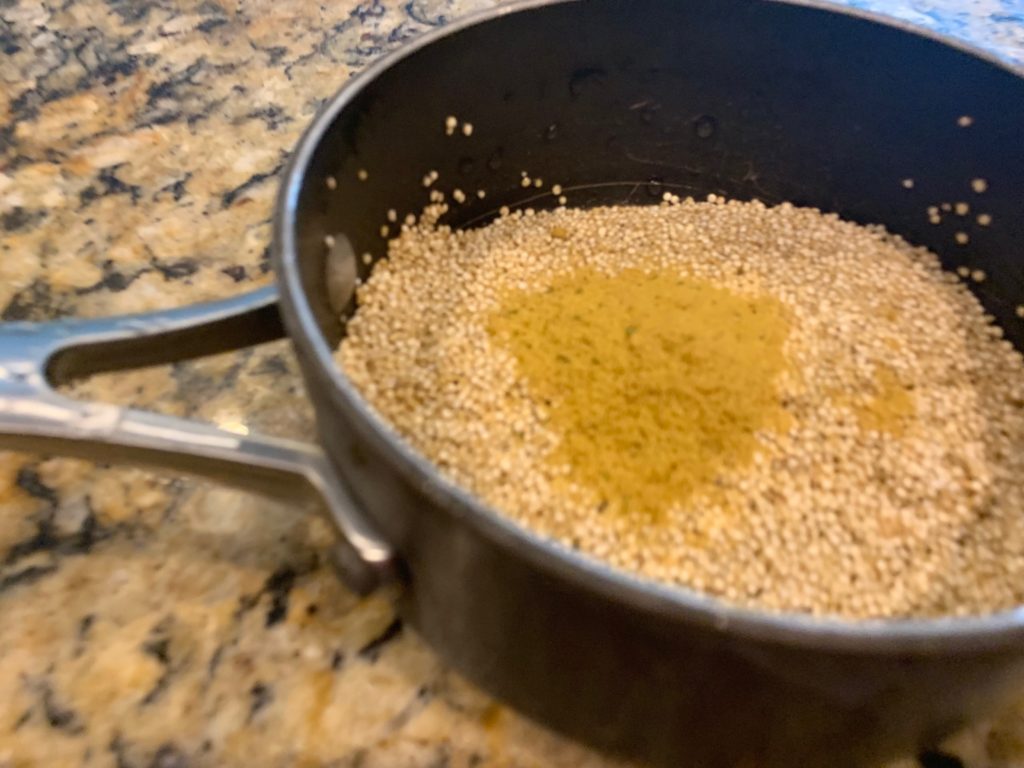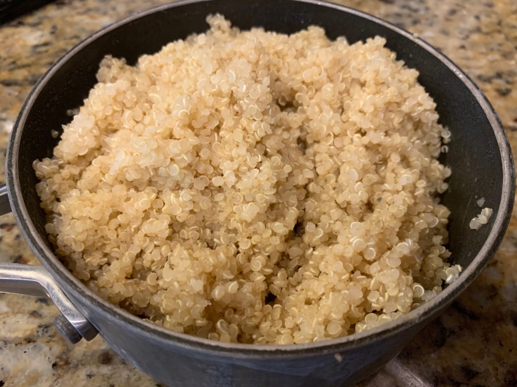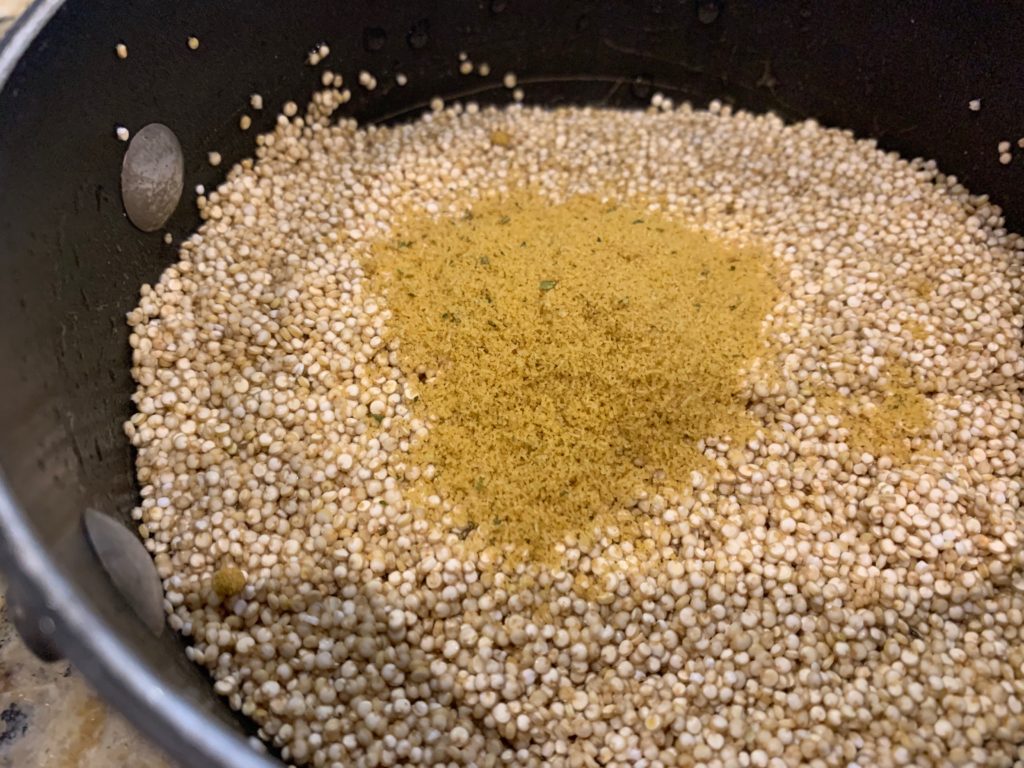 何度か洗い流して、コメと同じ要領で炊く、その前にコンソメ。キヌア、独特の匂いがあるけど、これで撲滅。私はそんなに嫌いな匂いじゃないので、コンソメ入れずにそのまま炊くことが多い。