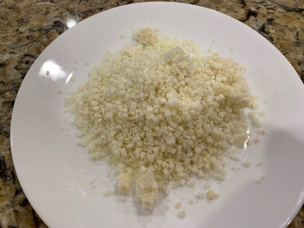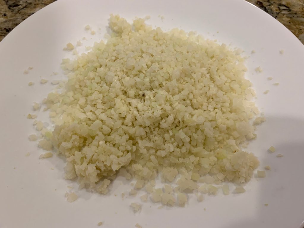 覚めたカリフラワー(秘密兵器なのでご内密にお願いします)の上に。さらに、ケチャップたっぷりと乾燥オニオンチップ。無いならパウダーを大量に。