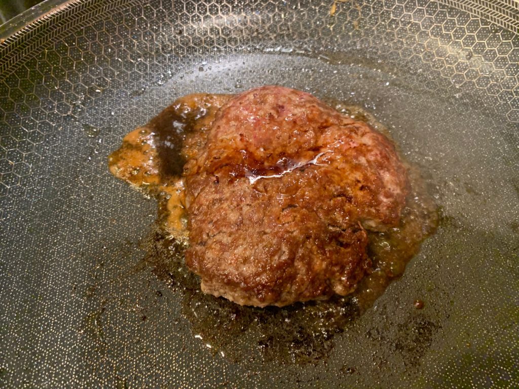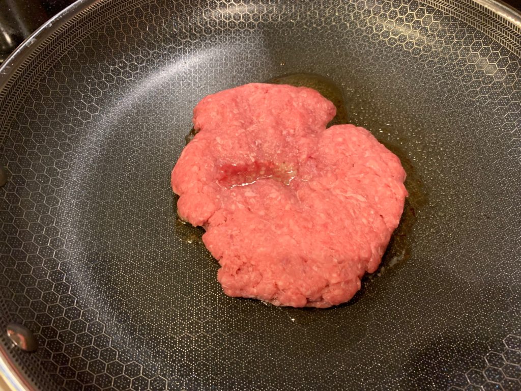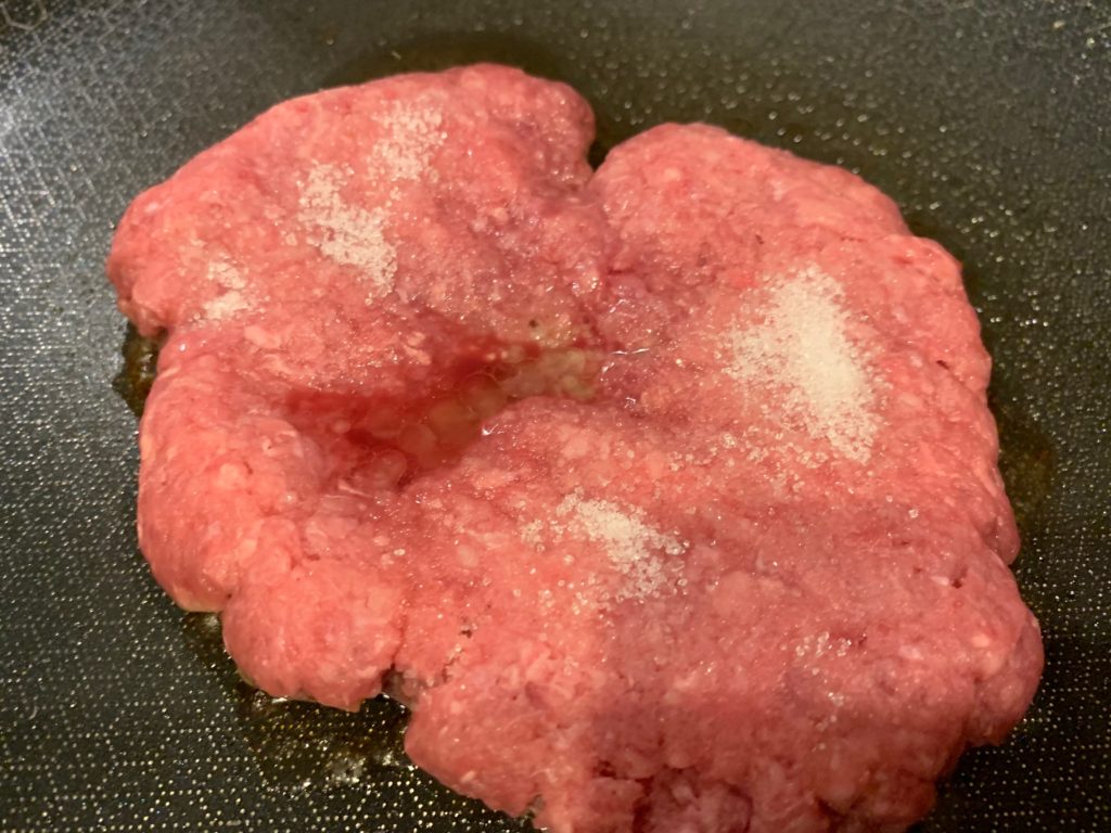 もちろん牛肉100%。牛肉をケチるために肉以外のものを入れたりする必要はない。肉の値段を見れば、そんなかわいそうな事しなくていいのは自明である。当然その方が美味い。万一、豚肉を混ぜたいとか思ったのであれば、こちらへ。