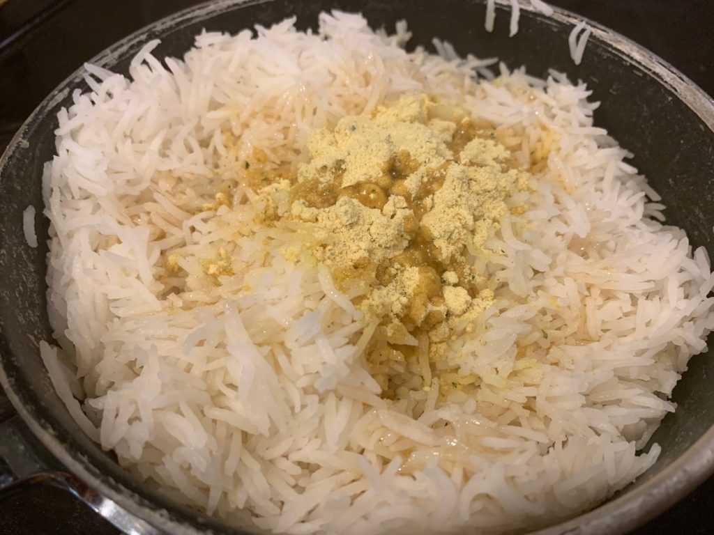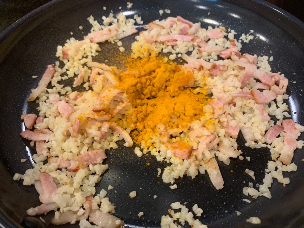火を通せば通すほど、カリフラワーのあの忌々しい臭いが消えるので頑張ろう。自分に満足できたらターメリック。カレー粉でもよい。黄色くなれば何でもいい。料理は雰囲気。