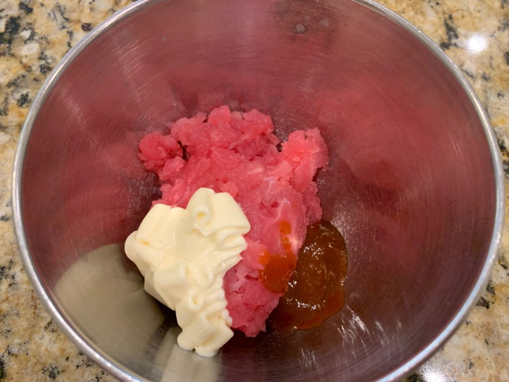レシピ スパイシーツナ丼 スパイシーサーモンロールとともに、メリカ寿司の王様である、スパイシーツナロールを丼にしたと言うだけの話なんだけど、当然美味い。ついでに言うとメリカ寿司だとスパイダーロールが好きだ。 これを解凍しておいた。 こんな感じ。 粉砕せよ!!! 今日のお友達。クラフトのアボカドマヨは近頃気に入っている。 ぶっかける。 ぶっかけたらグチャグチャにしてしまえ!!! 気が済むまでやったら完成、賢者タイム。 そして醤油。 ネギトロ、鮭茶漬けもよろしくです。