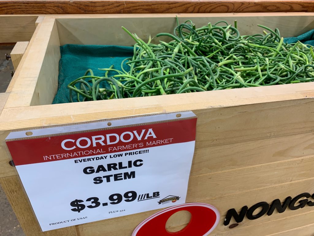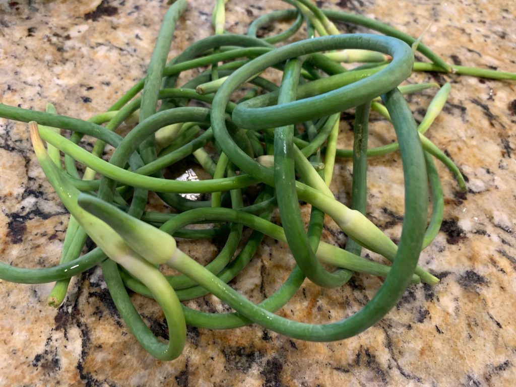 ニンニクの芽として売られてたりするけど、全く芽ではない。ニンニクを発芽して出てきたやつは葉だった。それはそれで美味しいんだけれど。