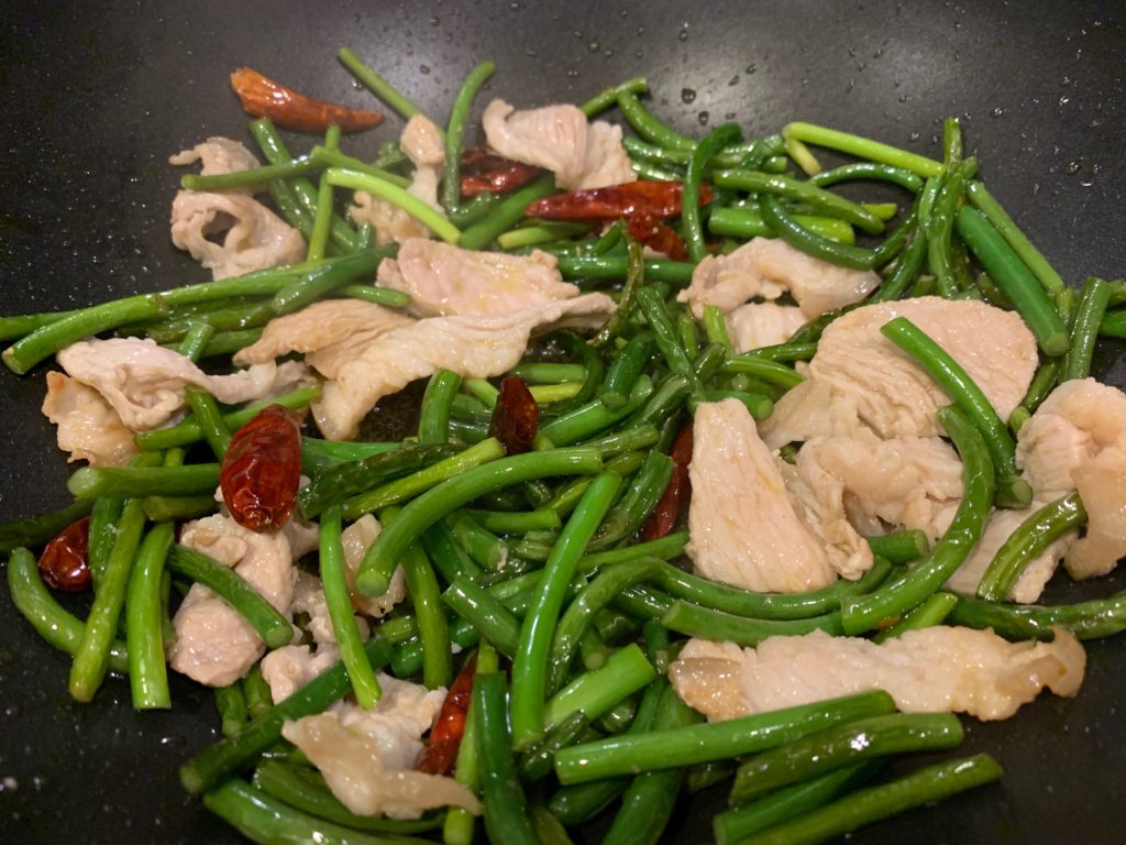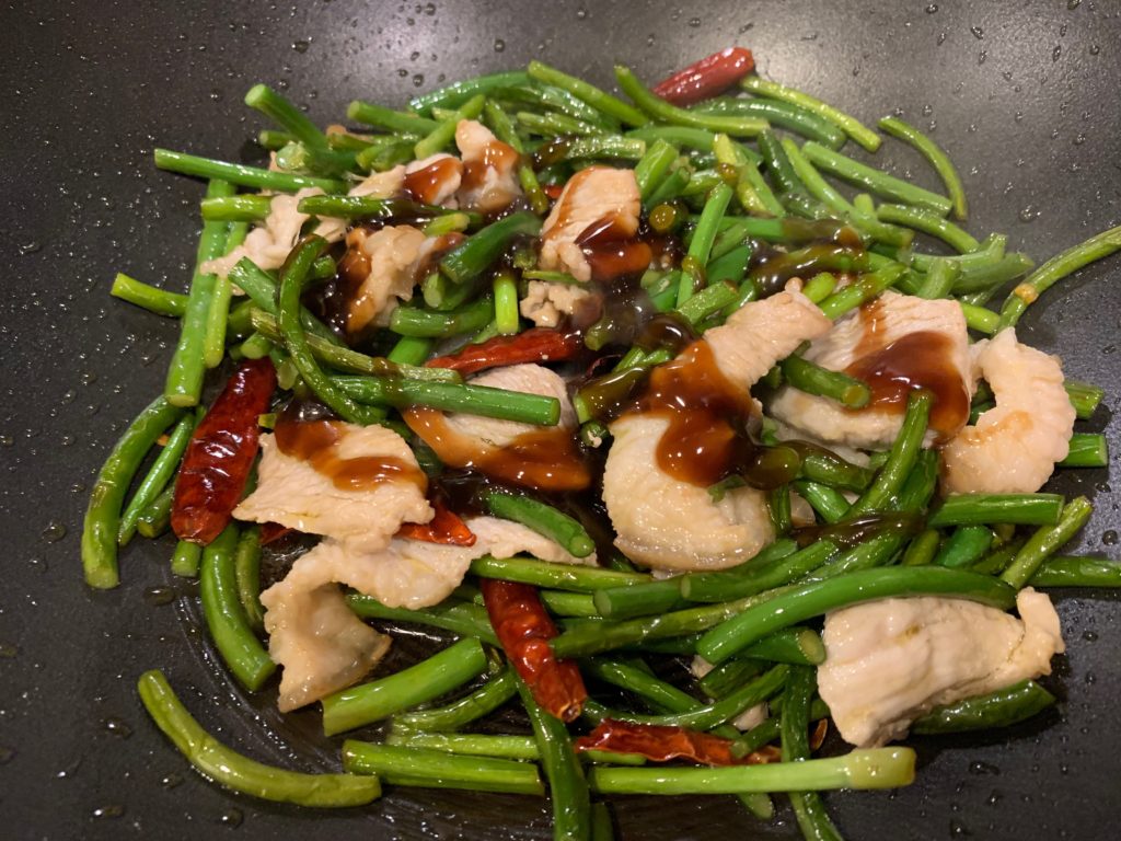 豚肉にもちょっと焦げ目がついたくらいが理想なのでもう少し。