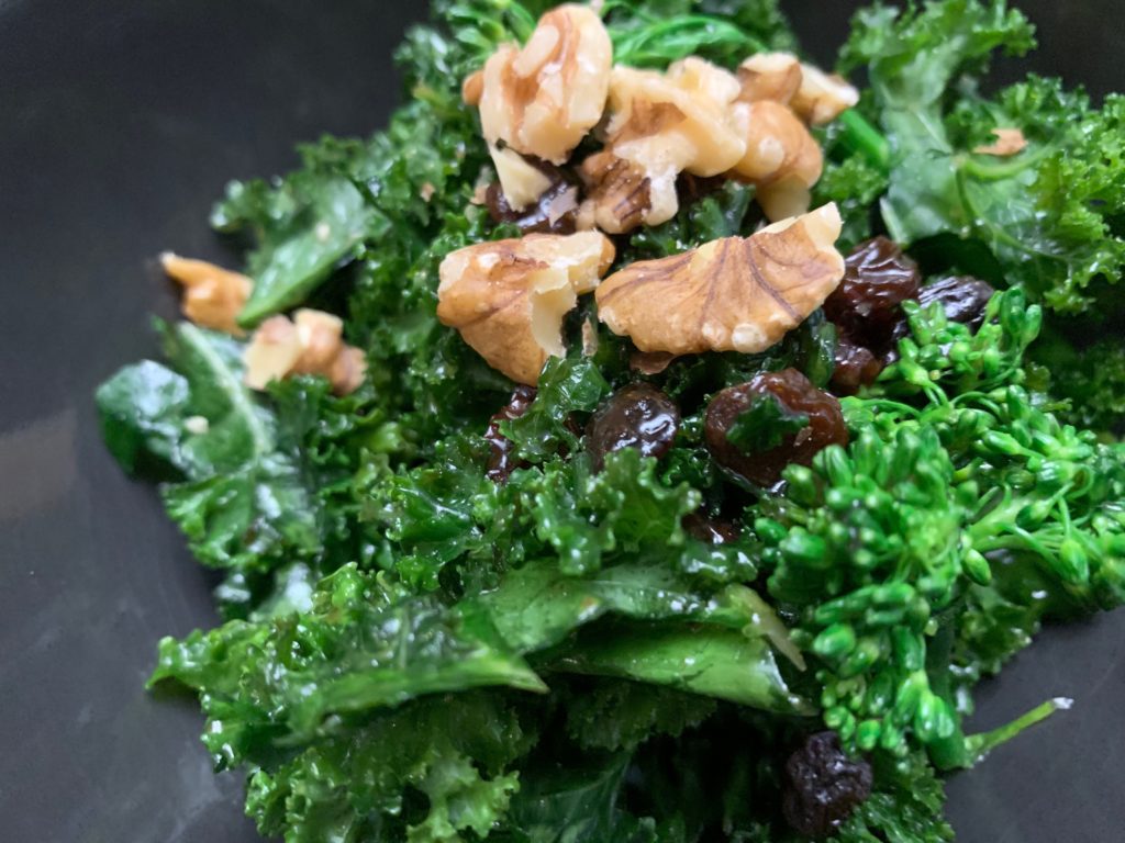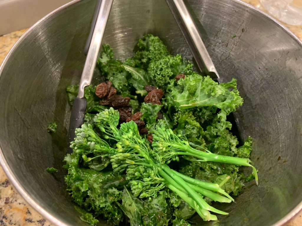 時間が経ったらブロッコリーにも。ちゃんと冷めてるだろうし。レーズンもあると良い。混ぜよう。