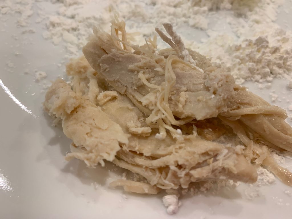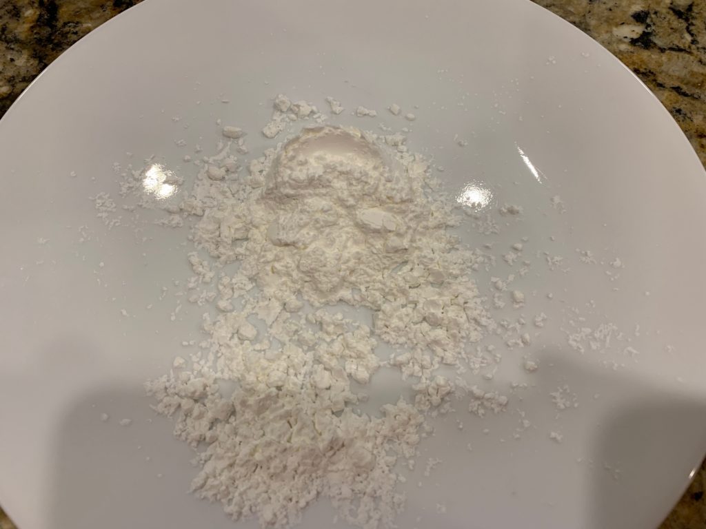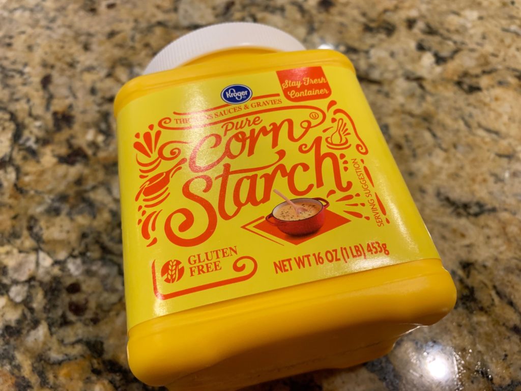 コーンスターチ。片栗粉とどう違うとか薀蓄聞いたことあるけど、差がわからないので無視。片栗粉と思って使えば片栗粉だし、そこら辺で売ってて安い。