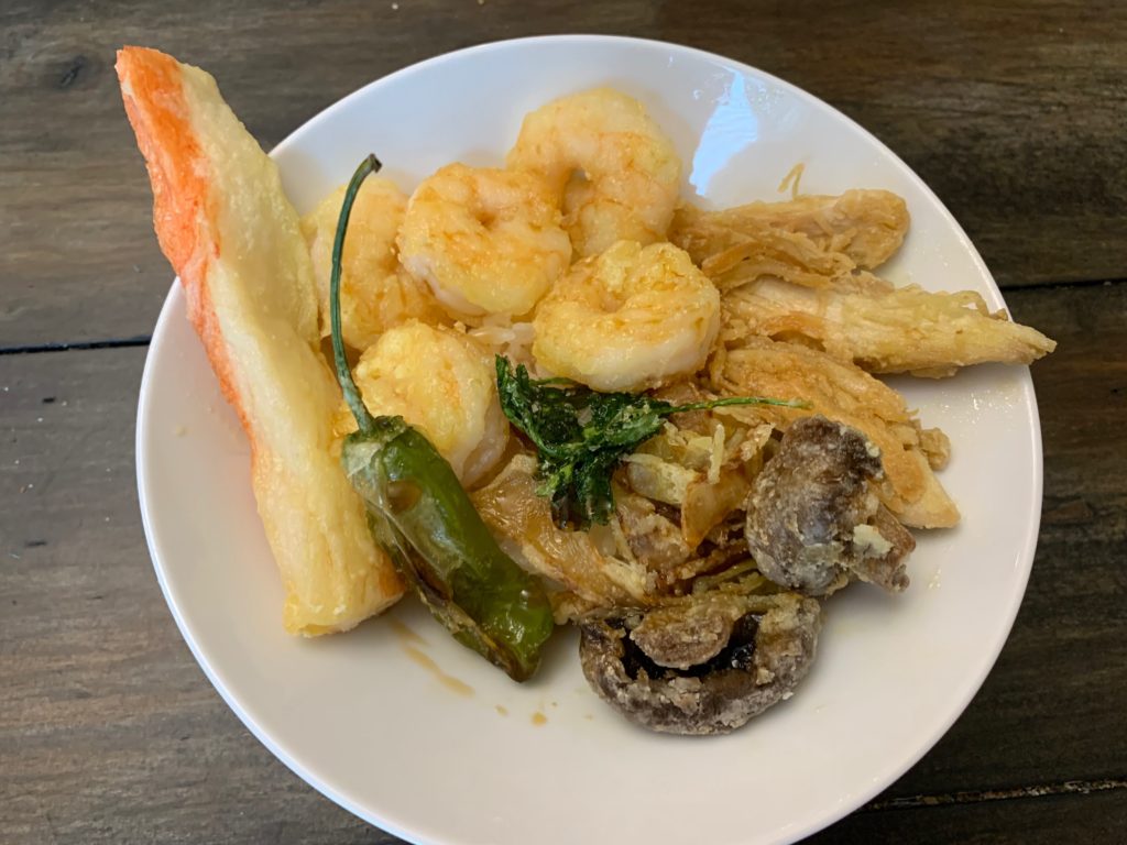 天丼にはエビが入ってないと行けないような気がしたので、見栄をはった。