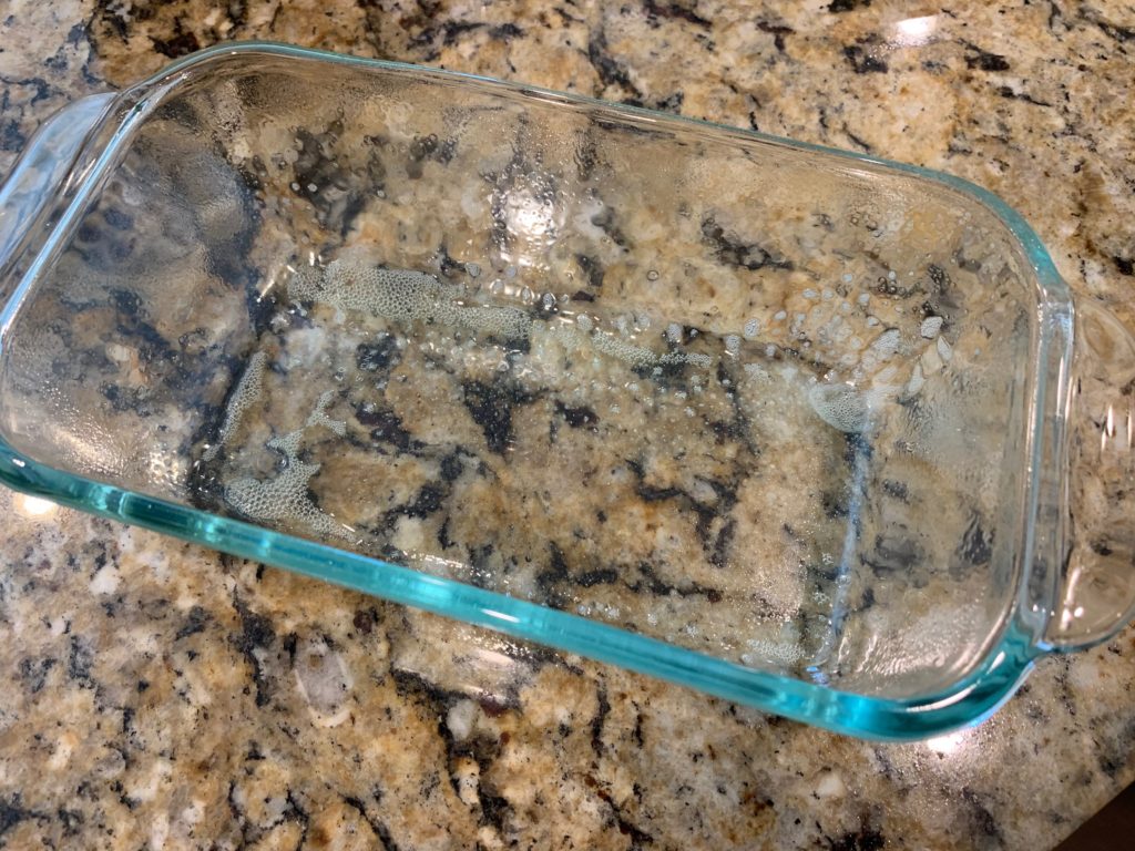 キャセロールに油をスプレーしてぶち込むだけ。200℃のオーブンに。