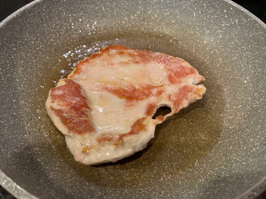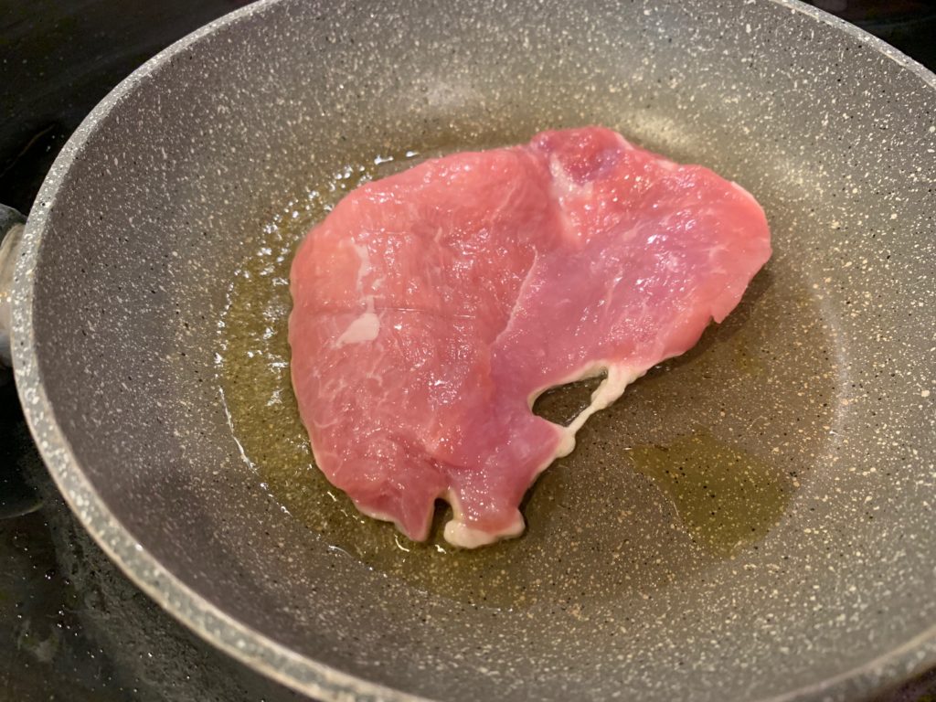 油敷いてフライパンで焼く。フライパンはしっかり温めること。