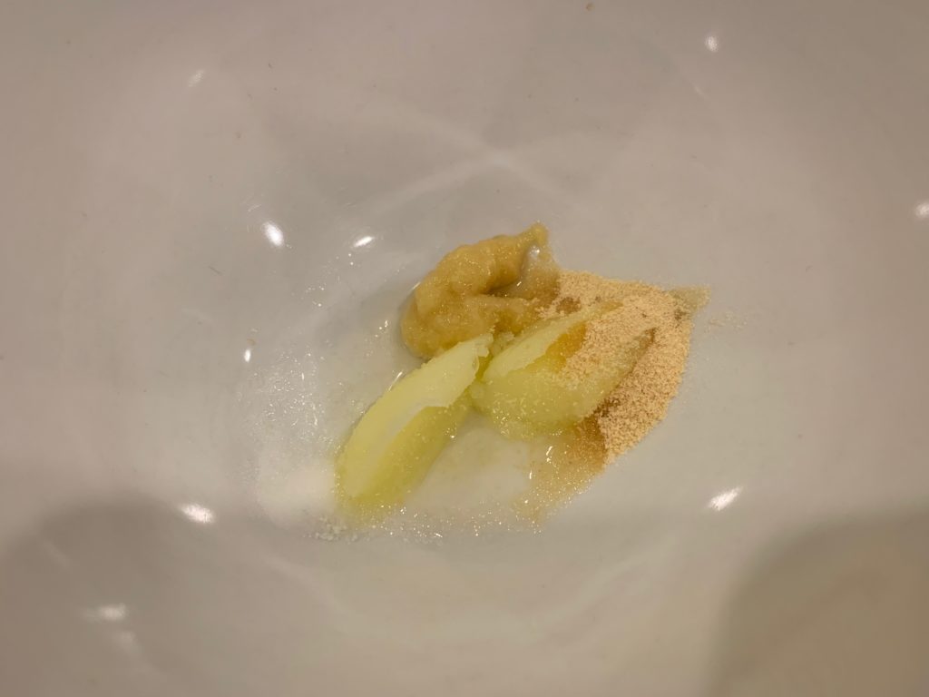 真ん中の白いのが脂、生しょうがとガーリックパウダー。