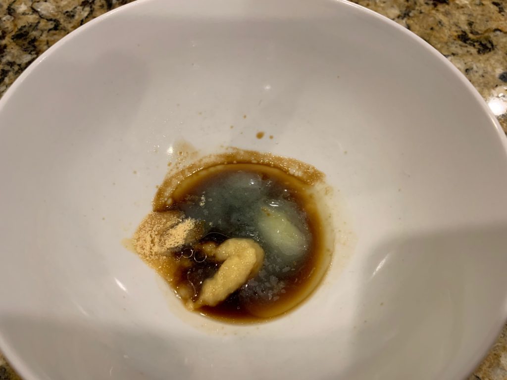 ニンニクでもいいけど、朝めしだったので生姜ベースにした。生しょうがはこれが激しく便利。スーパーの野菜コーナーに売ってる。$3~4。