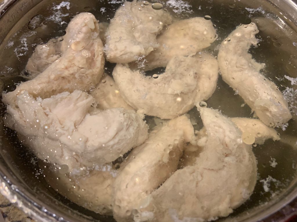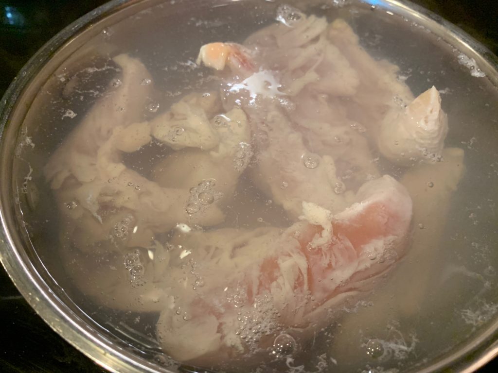 作り方は同じ。塩たっぷりのお湯を沸かして、肉投入。