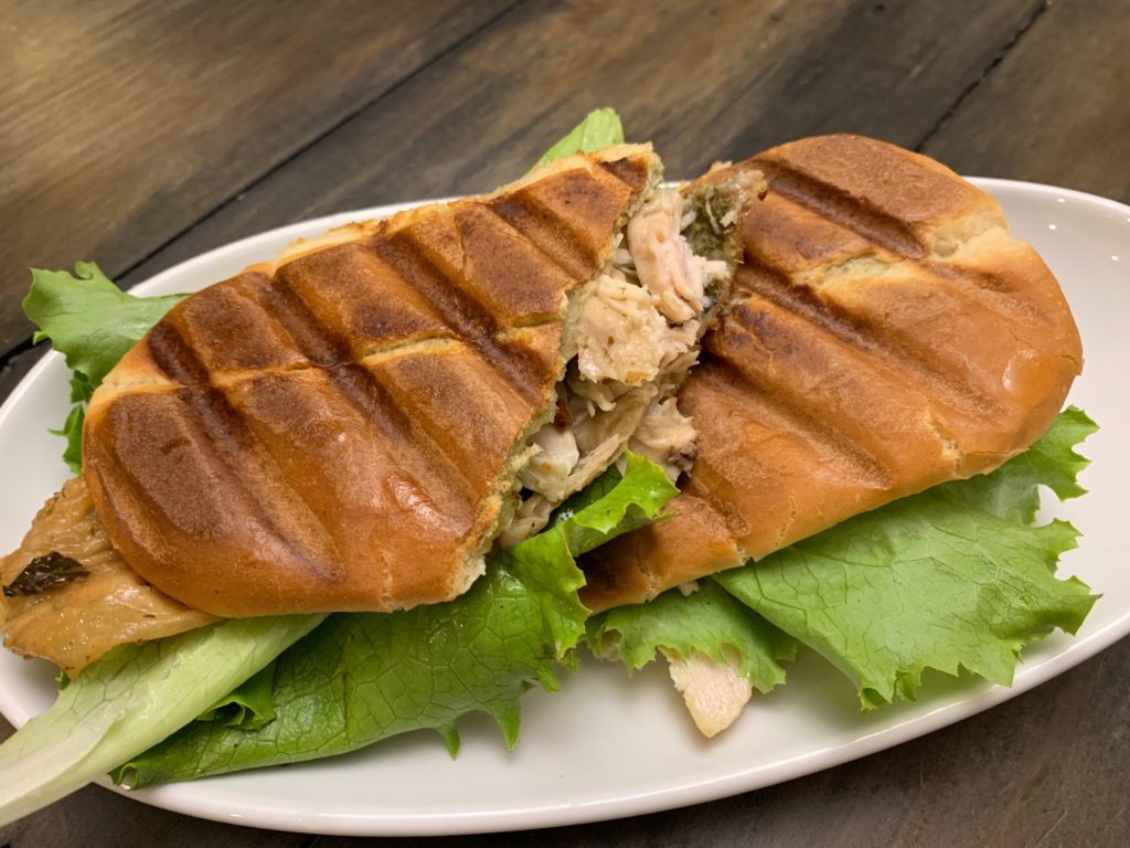 草を挟んでから切った。切る理由は外見向上のため。途端にそれっぽくなる。サンドイッチはホント切るだけで急に変わる。