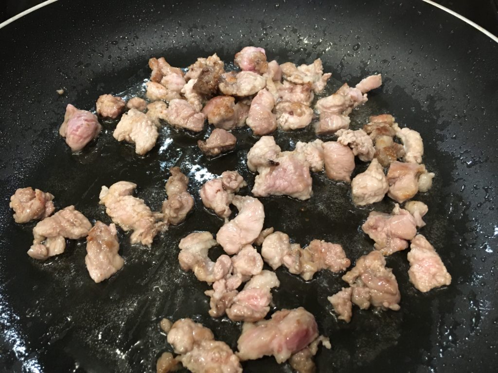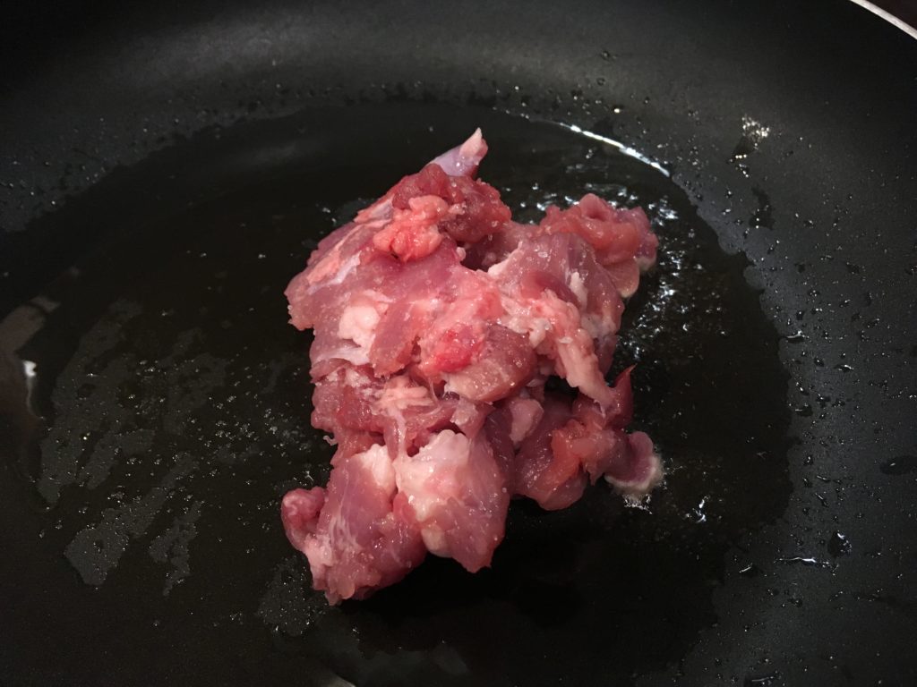 こういうのは筋っぽい肉のほうが美味いんだよ。炒める。