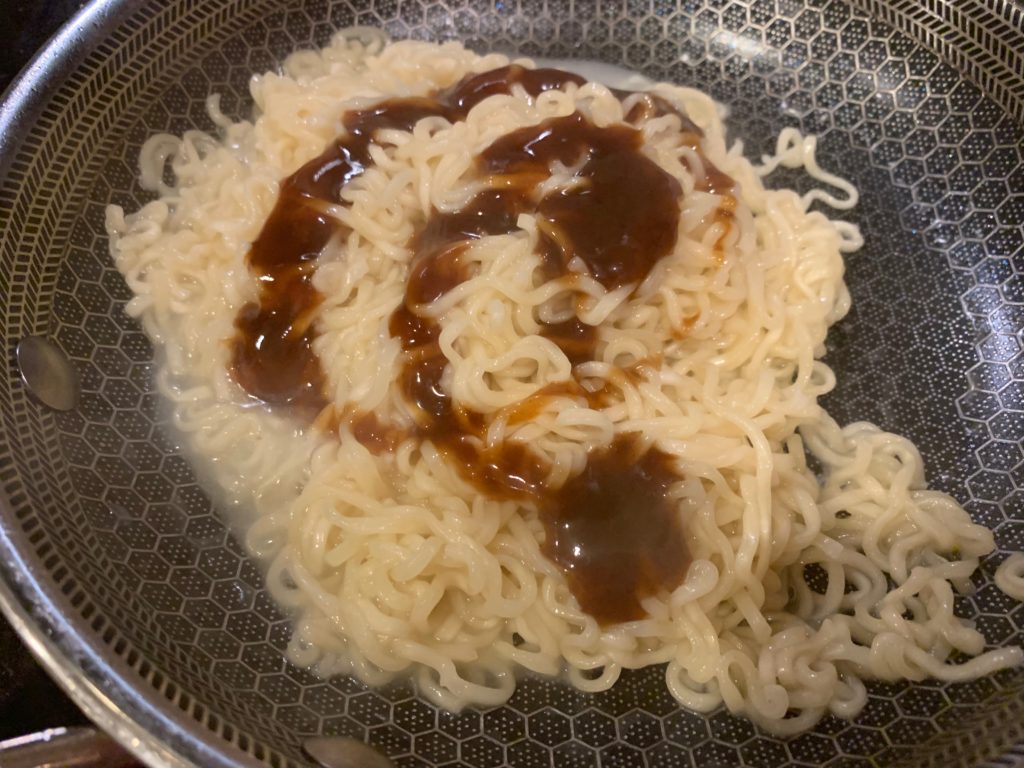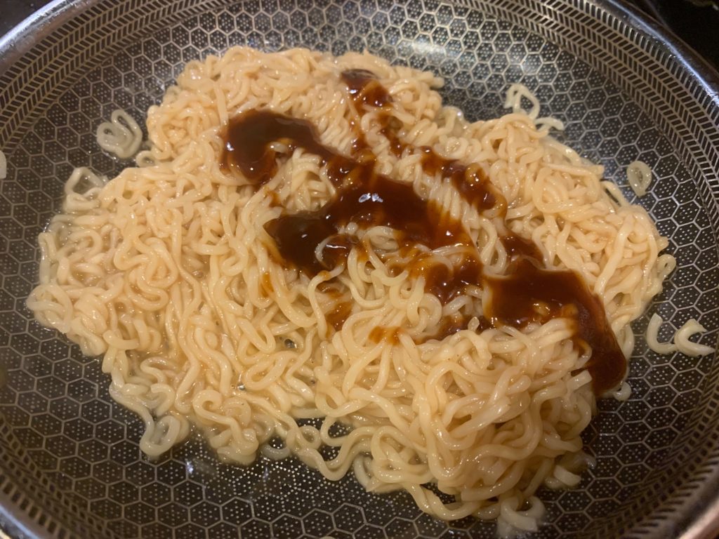 焼きそばが出来た段階で(重要)ソースを。