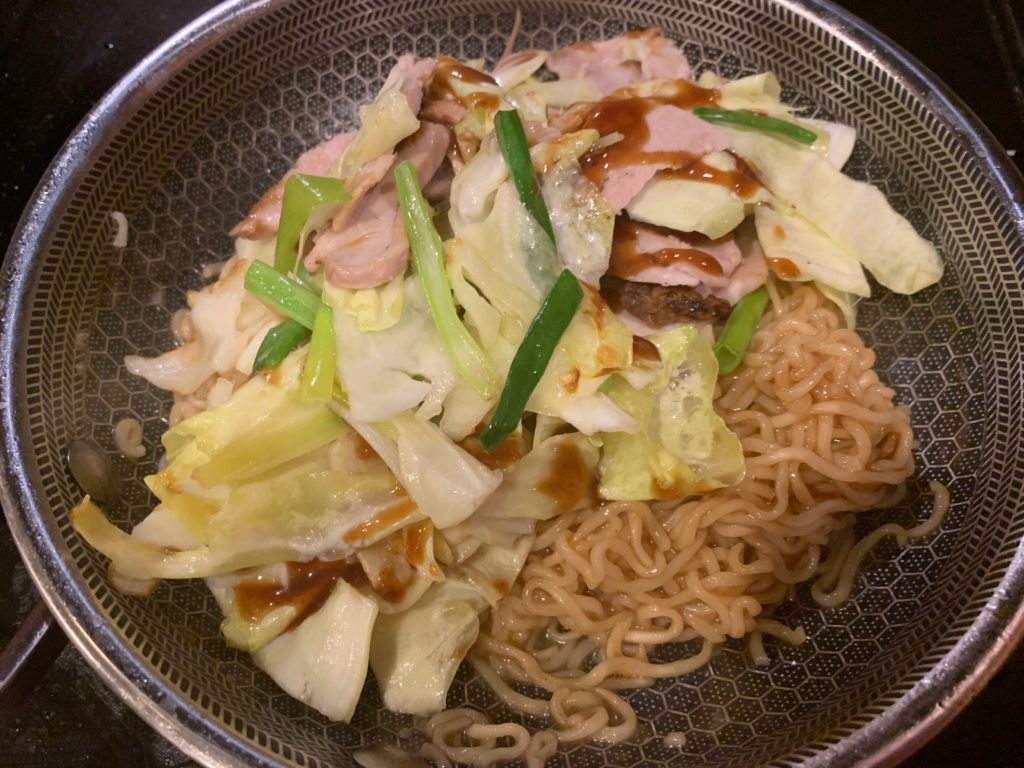 オタフクソースだけだったので、ちょっと甘めに仕上がった。都民ファーストを意識してマヨは自粛。ラーメンのスープを少し足せばよかったと思う。